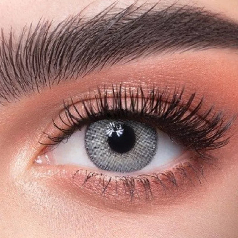 Light blue power lens with soft gray tones and a gentle outer ring. Fades into a pale whitish gray near the center for a bright, stunning, and naturally fresh look—available in prescription.